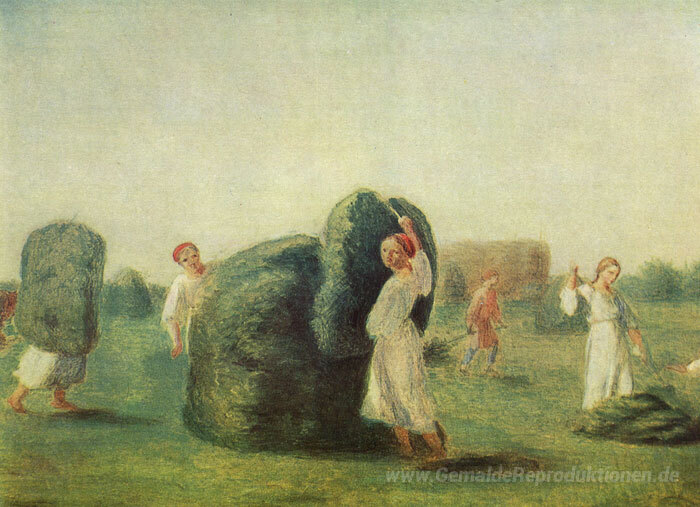 Wir bieten Ihnen eine handgefertigte Reproduktion auf Leinwand des berühmten Kunstwerks 'Heuernte' von Alexey Venetsianov, aus dem Reproduktionsmuseum.