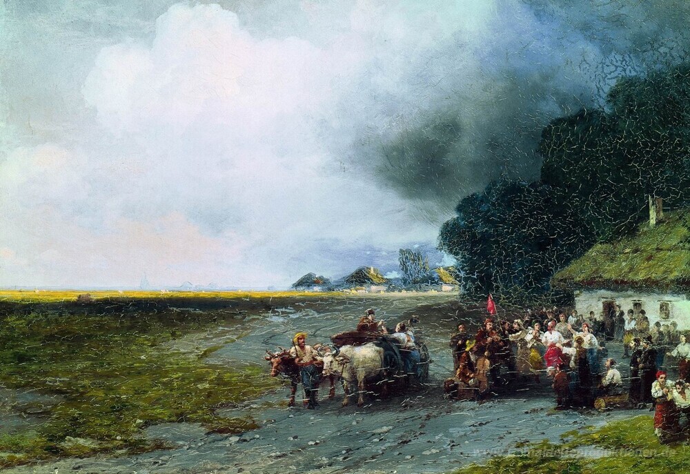 Wir bieten Ihnen eine handgefertigte Reproduktion auf Leinwand des berühmten Kunstwerks 'Hochzeit in der Ukraine' von Ivan Aivazovsky, aus dem Reproduktionsmuseum.