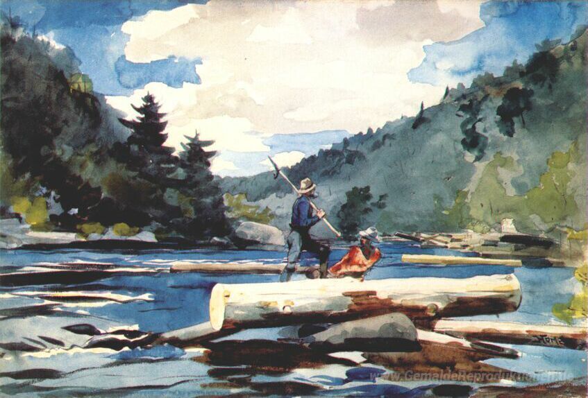 Wir bieten Ihnen eine handgefertigte Reproduktion auf Leinwand des berühmten Kunstwerks 'Hudson, Protokollierung' von Winslow Homer, aus dem Reproduktionsmuseum.