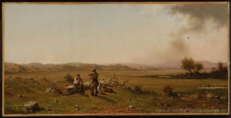 Wir bieten Ihnen eine handgefertigte Reproduktion auf Leinwand des berühmten Kunstwerks 'Hunters Ruhen' von Martin Johnson Heade, aus dem Reproduktionsmuseum.