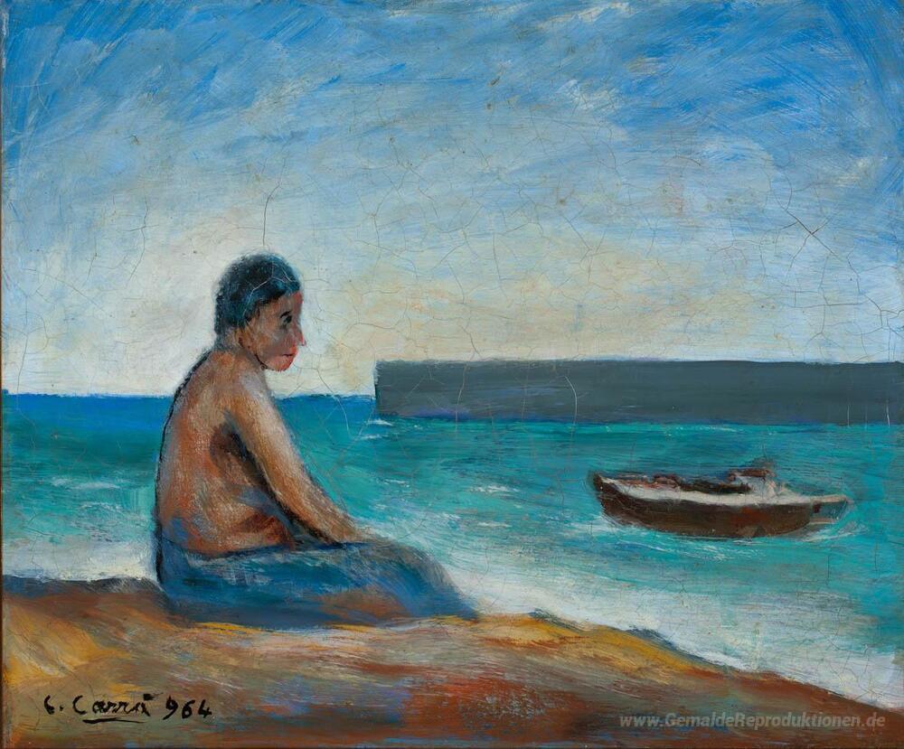 Wir bieten Ihnen eine handgefertigte Reproduktion auf Leinwand des berühmten Kunstwerks 'Il Pescatore' von Carlo Carra, aus dem Reproduktionsmuseum.