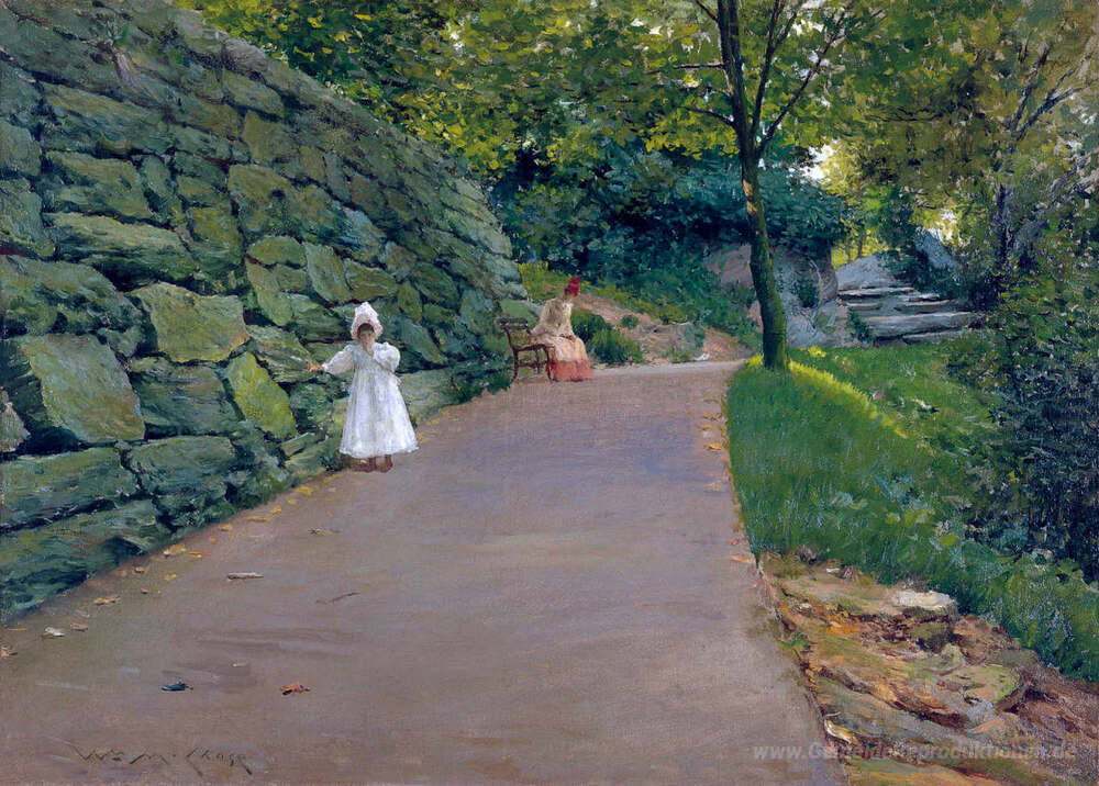 Wir bieten Ihnen eine handgefertigte Reproduktion auf Leinwand des berühmten Kunstwerks 'Im Park - ein Nebenpfad' von William Merritt Chase, aus dem Reproduktionsmuseum.