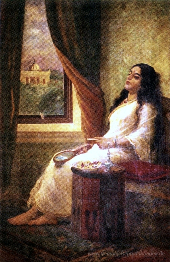 Die Werke von Raja Ravi Varma sind nicht nur dekorative Elemente; sie verleihen jedem Raum eine besondere Aura. Durch die harmonische Verbindung von Licht und Schatten sowie die exquisite Detailtreue wird jedes Gemälde zu einem Aufhänger für Gespräche und Komplimente. Tauchen Sie ein in die Schönheit von In Betrachtung und verwandeln Sie Ihre Umgebung in einen Ort der Inspiration und Eleganz.