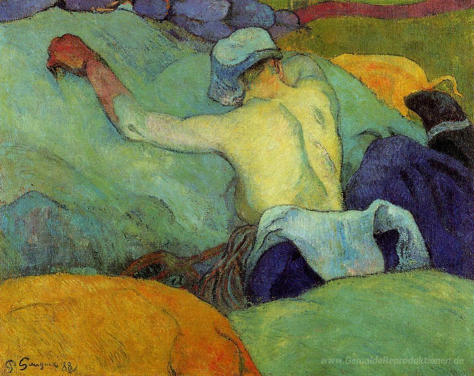 Wir bieten Ihnen eine handgefertigte Reproduktion auf Leinwand des berühmten Kunstwerks 'In der Hitze (Die Schweine)' von Paul Gauguin, aus dem Reproduktionsmuseum.