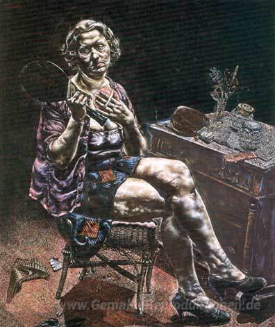 Wir bieten Ihnen eine handgefertigte Reproduktion auf Leinwand des berühmten Kunstwerks 'In die Welt da kam eine Seele Genannt Ida' von Ivan Albright, aus dem Reproduktionsmuseum.