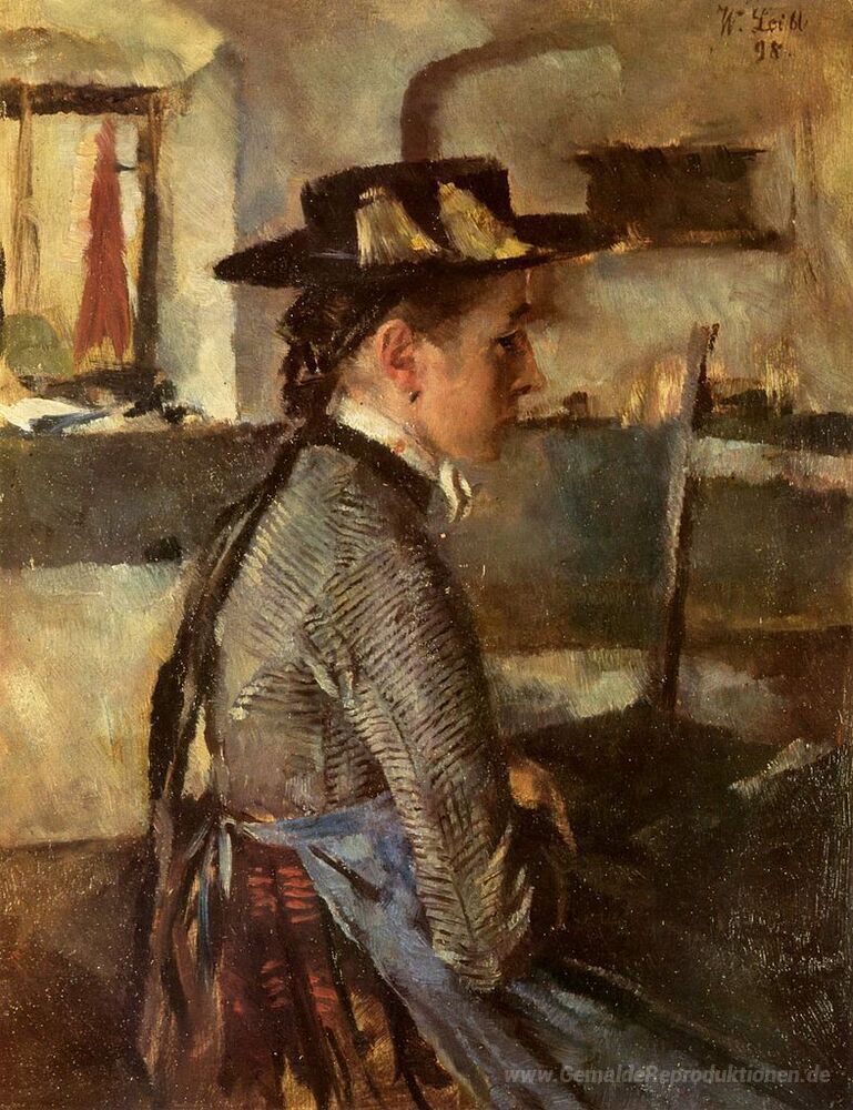 Wir bieten Ihnen eine handgefertigte Reproduktion auf Leinwand des berühmten Kunstwerks 'In Erwartung' von Wilhelm Leibl, aus dem Reproduktionsmuseum.