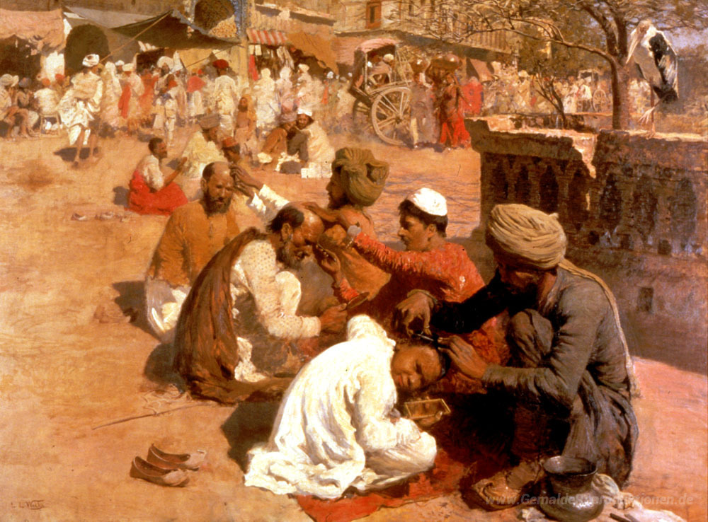 Wir bieten Ihnen eine handgefertigte Reproduktion auf Leinwand des berühmten Kunstwerks 'Indian Barbers Saharanpore' von Edwin Lord Weeks, aus dem Reproduktionsmuseum.