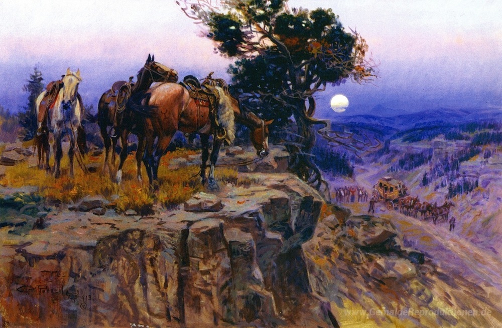 Wir bieten Ihnen eine handgefertigte Reproduktion auf Leinwand des berühmten Kunstwerks 'Innocent Alliierten' von Charles M. Russell, aus dem Reproduktionsmuseum.
