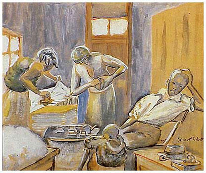 Wir bieten Ihnen eine handgefertigte Reproduktion auf Leinwand des berühmten Kunstwerks 'Interior Sophiatown' von Gerard Sekoto, aus dem Reproduktionsmuseum.