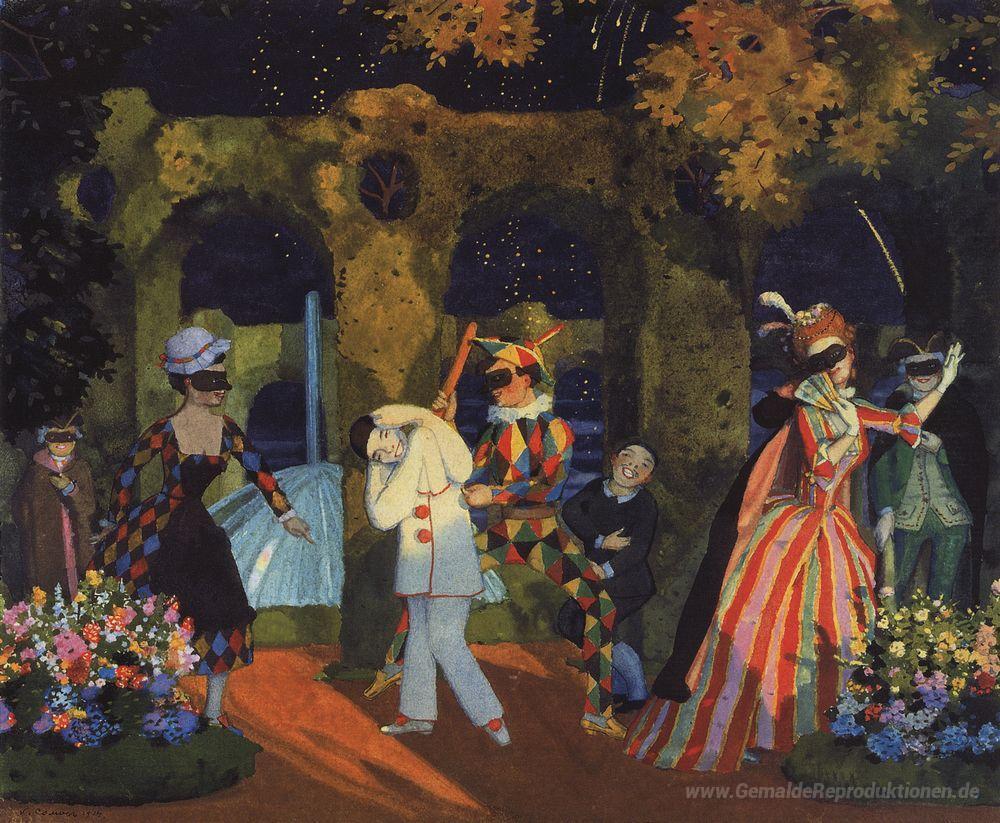 Wir bieten Ihnen eine handgefertigte Reproduktion auf Leinwand des berühmten Kunstwerks 'Italienische Komödie 1' von Konstantin Somov, aus dem Reproduktionsmuseum.