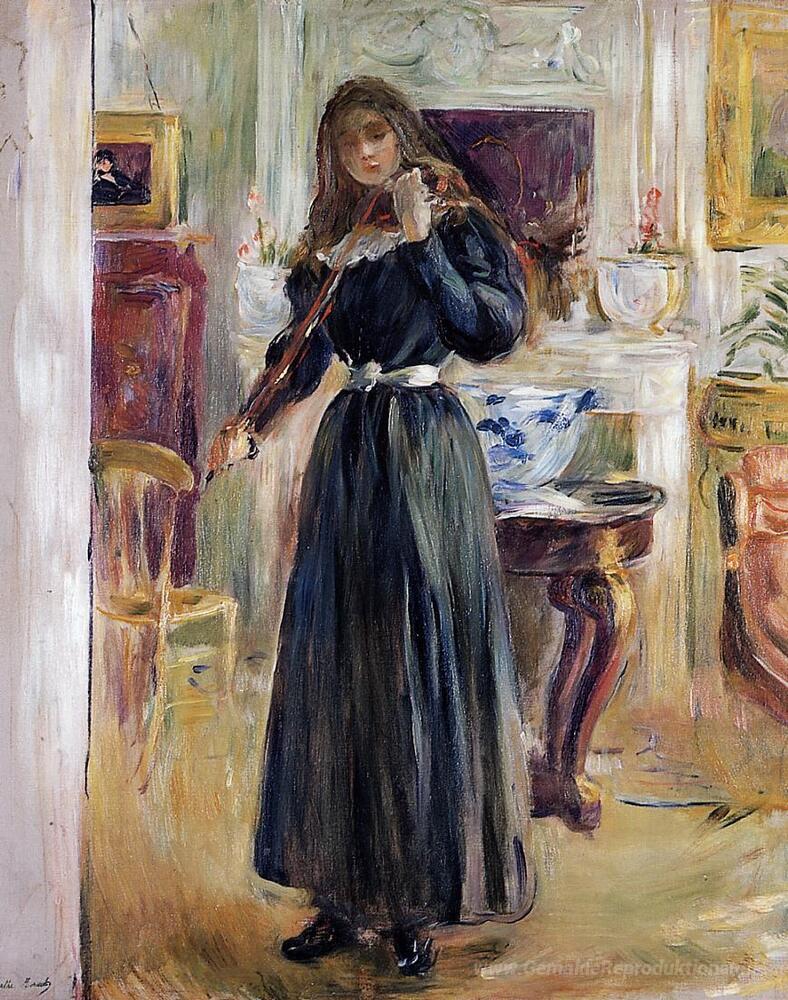 Wir bieten Ihnen eine handgefertigte Reproduktion auf Leinwand des berühmten Kunstwerks 'Julie spielt eine Violine' von Berthe Morisot, aus dem Reproduktionsmuseum.