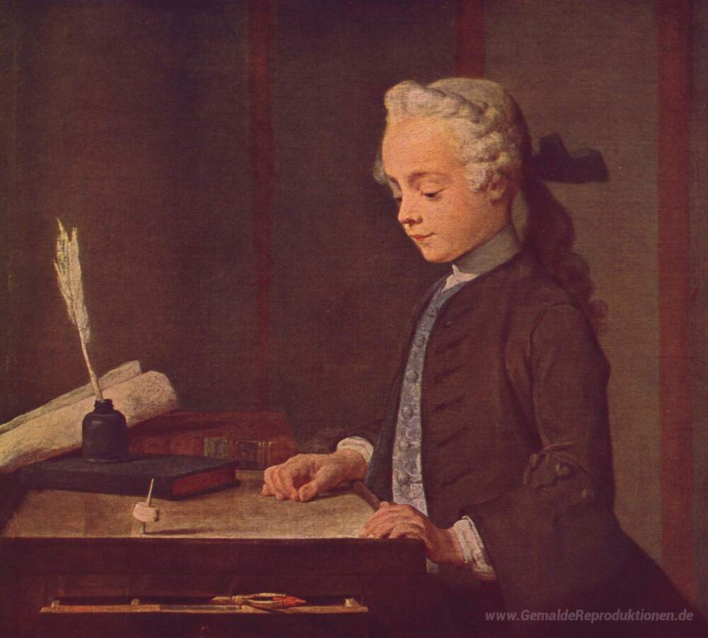 Wir bieten Ihnen eine handgefertigte Reproduktion auf Leinwand des berühmten Kunstwerks 'Junge mit einer Spitze' von Jean-Baptiste-Simeon Chardin, aus dem Reproduktionsmuseum.