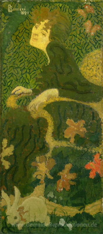 Wir bieten Ihnen eine handgefertigte Reproduktion auf Leinwand des berühmten Kunstwerks 'Junges Mädchen, das mit einem Kaninchen' von Pierre Bonnard, aus dem Reproduktionsmuseum.