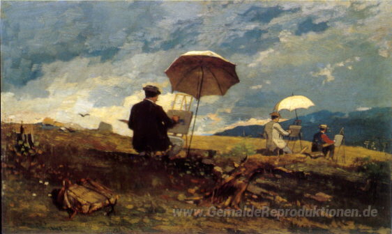 Wir bieten Ihnen eine handgefertigte Reproduktion auf Leinwand des berühmten Kunstwerks 'Künstler Skizzieren in den White Mountains' von Winslow Homer, aus dem Reproduktionsmuseum.