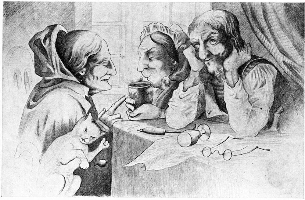 Wir bieten Ihnen eine handgefertigte Reproduktion auf Leinwand des berühmten Kunstwerks 'Kaffesladder' von Theodor Severin Kittelsen, aus dem Reproduktionsmuseum.