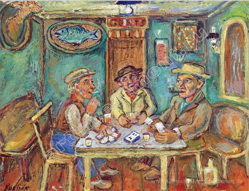 Wir bieten Ihnen eine handgefertigte Reproduktion auf Leinwand des berühmten Kunstwerks 'Kartenspielen' von David Burliuk, aus dem Reproduktionsmuseum.
