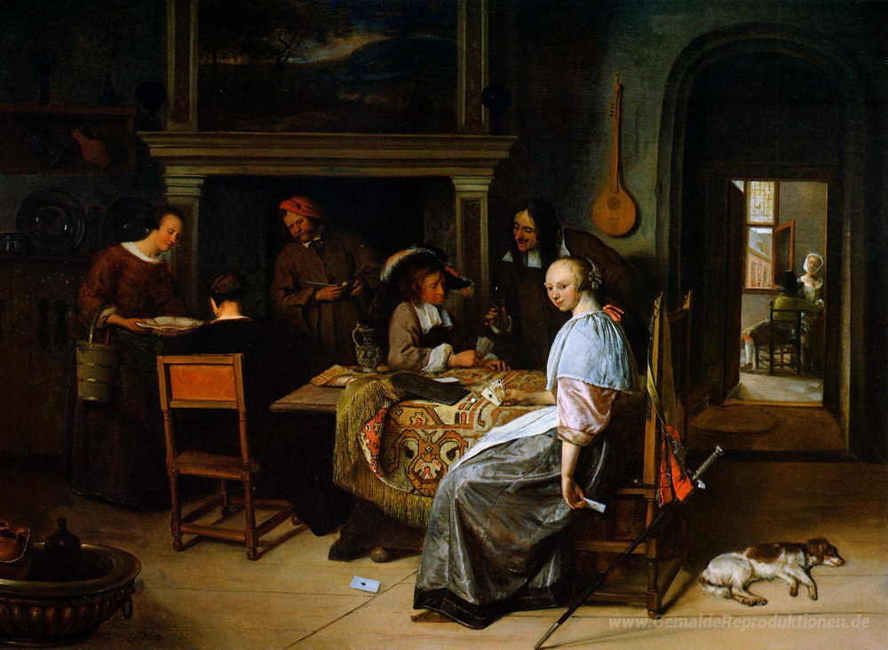 Wir bieten Ihnen eine handgefertigte Reproduktion auf Leinwand des berühmten Kunstwerks 'Kartenspieler' von Jan Steen, aus dem Reproduktionsmuseum.