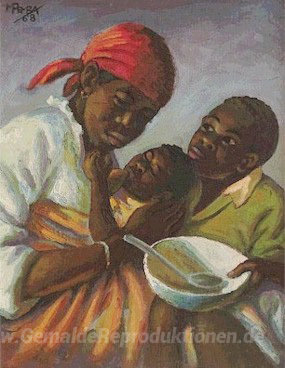 Wir bieten Ihnen eine handgefertigte Reproduktion auf Leinwand des berühmten Kunstwerks 'Kein Essen für meine Kinder' von George Pemba, aus dem Reproduktionsmuseum.