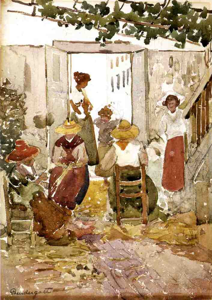 Wir bieten Ihnen eine handgefertigte Reproduktion auf Leinwand des berühmten Kunstwerks 'Klöpplerinnen, Venedig' von Maurice Prendergast, aus dem Reproduktionsmuseum.