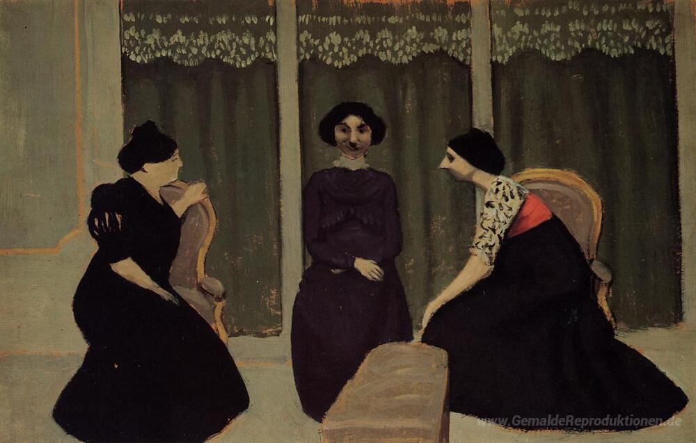 Wir bieten Ihnen eine handgefertigte Reproduktion auf Leinwand des berühmten Kunstwerks 'Klatsch' von Felix Vallotton , aus dem Reproduktionsmuseum.