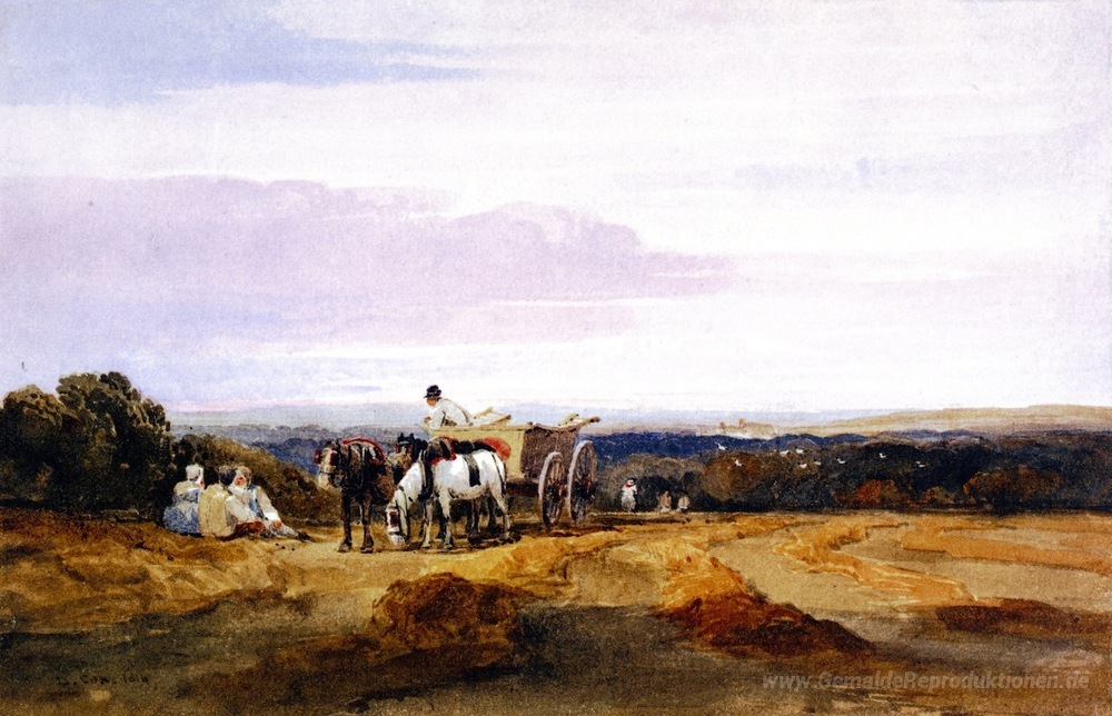 Wir bieten Ihnen eine handgefertigte Reproduktion auf Leinwand des berühmten Kunstwerks 'Kornfeld' von David Cox, aus dem Reproduktionsmuseum.