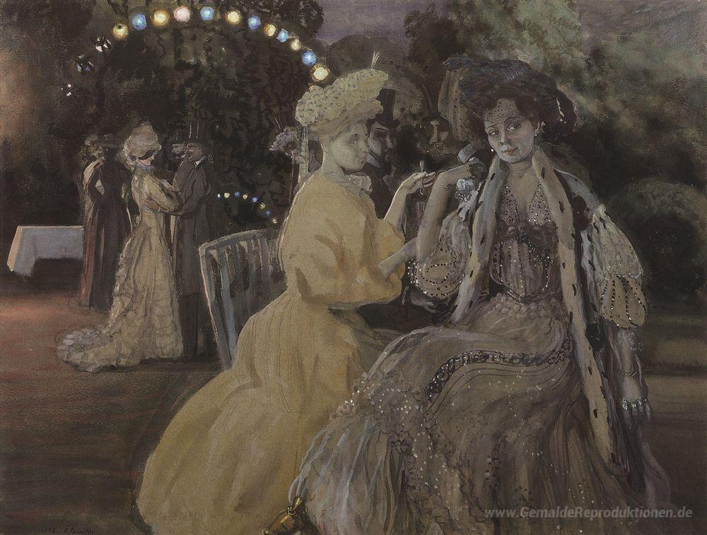 Wir bieten Ihnen eine handgefertigte Reproduktion auf Leinwand des berühmten Kunstwerks 'Kurtisanen' von Konstantin Somov, aus dem Reproduktionsmuseum.