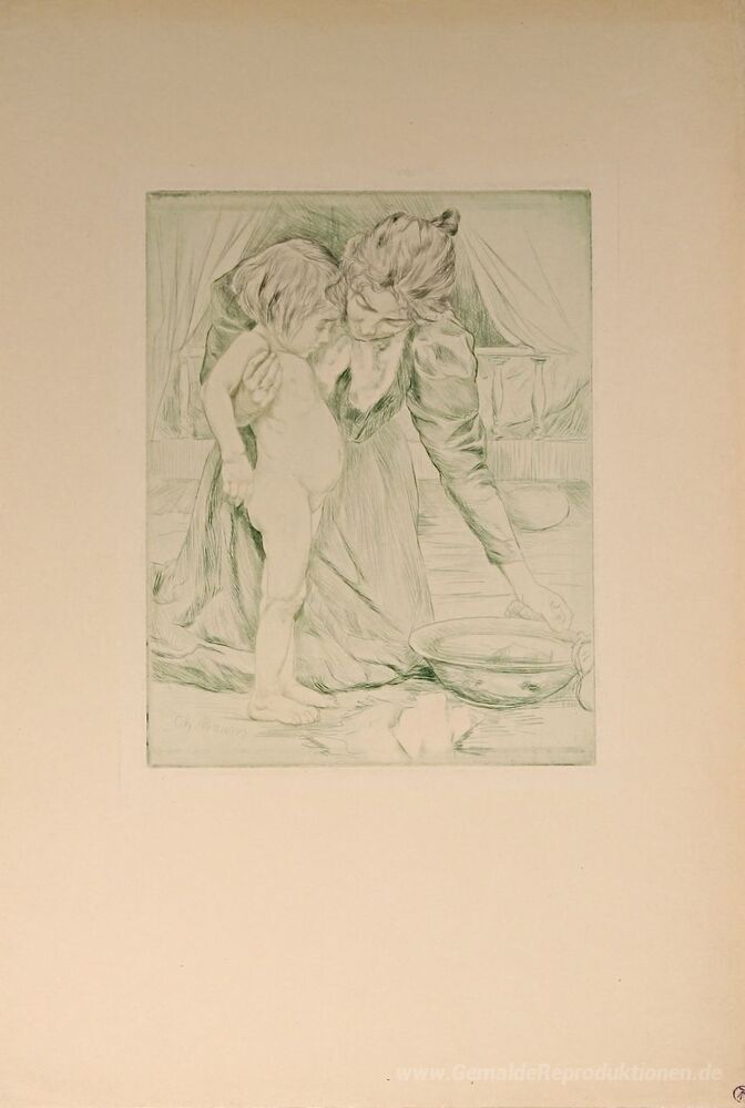 Wir bieten Ihnen eine handgefertigte Reproduktion auf Leinwand des berühmten Kunstwerks 'La Petite Toilette' von Charles Maurin, aus dem Reproduktionsmuseum.