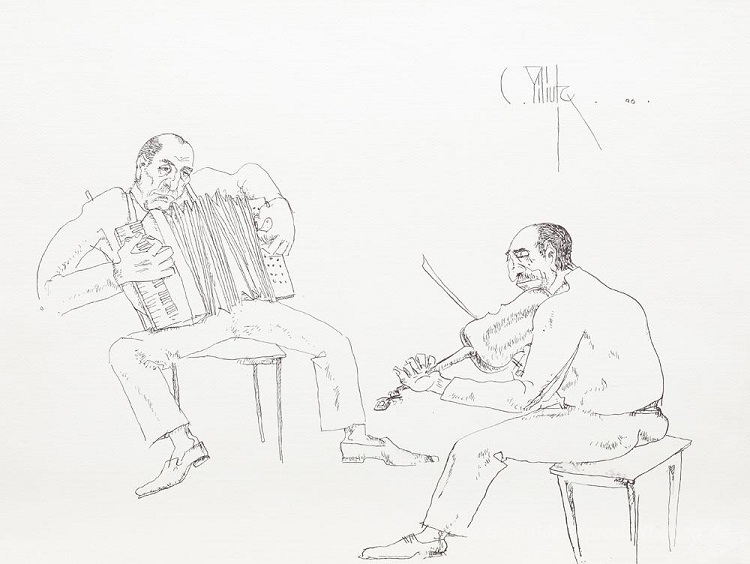 Wir bieten Ihnen eine handgefertigte Reproduktion auf Leinwand des berühmten Kunstwerks 'Lautari' von Constantin Piliuta, aus dem Reproduktionsmuseum.