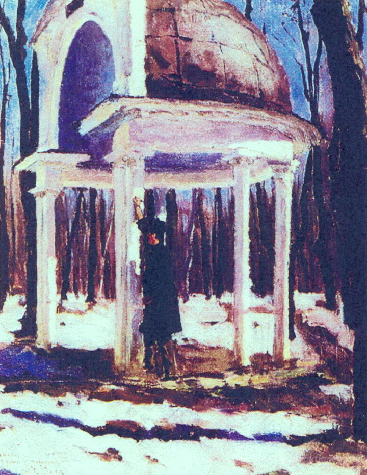Wir bieten Ihnen eine handgefertigte Reproduktion auf Leinwand des berühmten Kunstwerks 'Lefortowo Garten in Moskau' von Konstantin Yuon, aus dem Reproduktionsmuseum.