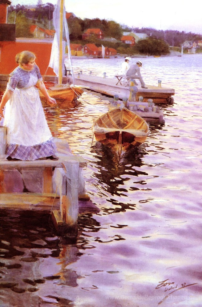 Wir bieten Ihnen eine handgefertigte Reproduktion auf Leinwand des berühmten Kunstwerks 'Legungen der Wellen' von Anders Zorn, aus dem Reproduktionsmuseum.