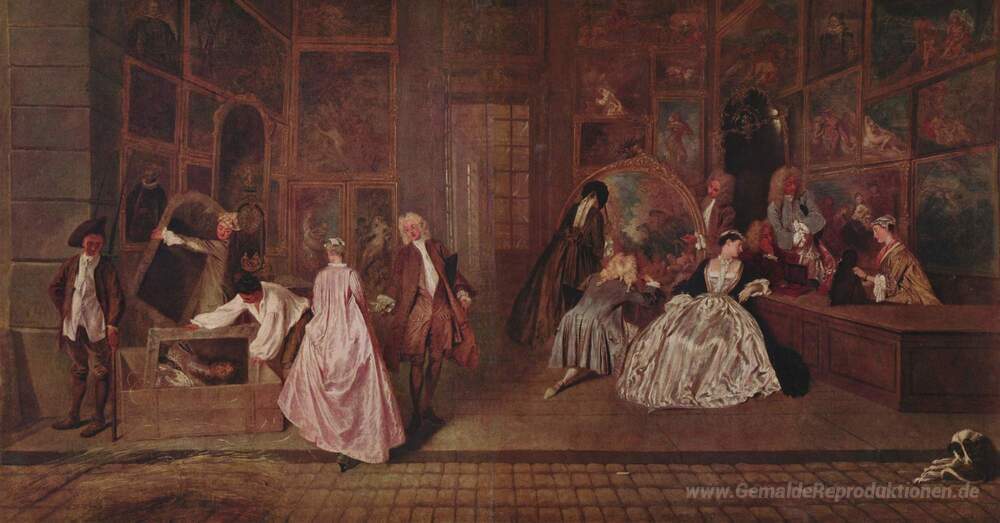 Wir bieten Ihnen eine handgefertigte Reproduktion auf Leinwand des berühmten Kunstwerks 'L'Enseigne de Gersaint' von Antoine Watteau, aus dem Reproduktionsmuseum.