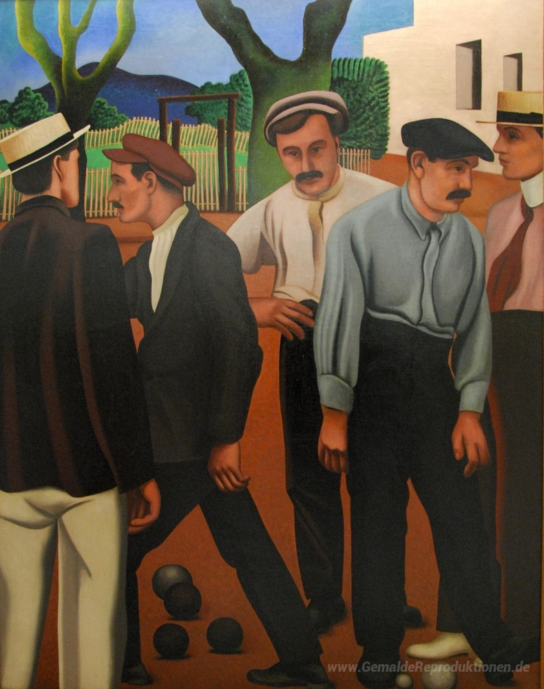 Wir bieten Ihnen eine handgefertigte Reproduktion auf Leinwand des berühmten Kunstwerks 'Les Joueurs de Boules' von Auguste Herbin, aus dem Reproduktionsmuseum.