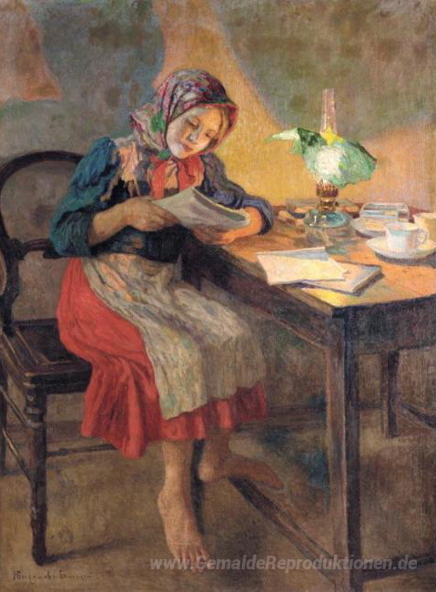 Willkommen in der faszinierenden Welt der Ölgemälde, wo Kunst und Emotion miteinander verschmelzen. Unser Angebot umfasst Meisterwerke wie Lesen von der Lampe (Schülerin) des renommierten Künstlers Nikolay Bogdanov-Belsky, der für seine Fähigkeit bekannt ist, innere Wärme und Intimität in jedem Pinselstrich einzufangen. Die harmonische Darstellung der Schülerin, die in das Licht einer Lampe vertieft ist, zeugt von Bogdanov-Belskys unverwechselbarem Stil, der Realismus mit einem Hauch von Romantik vereint.