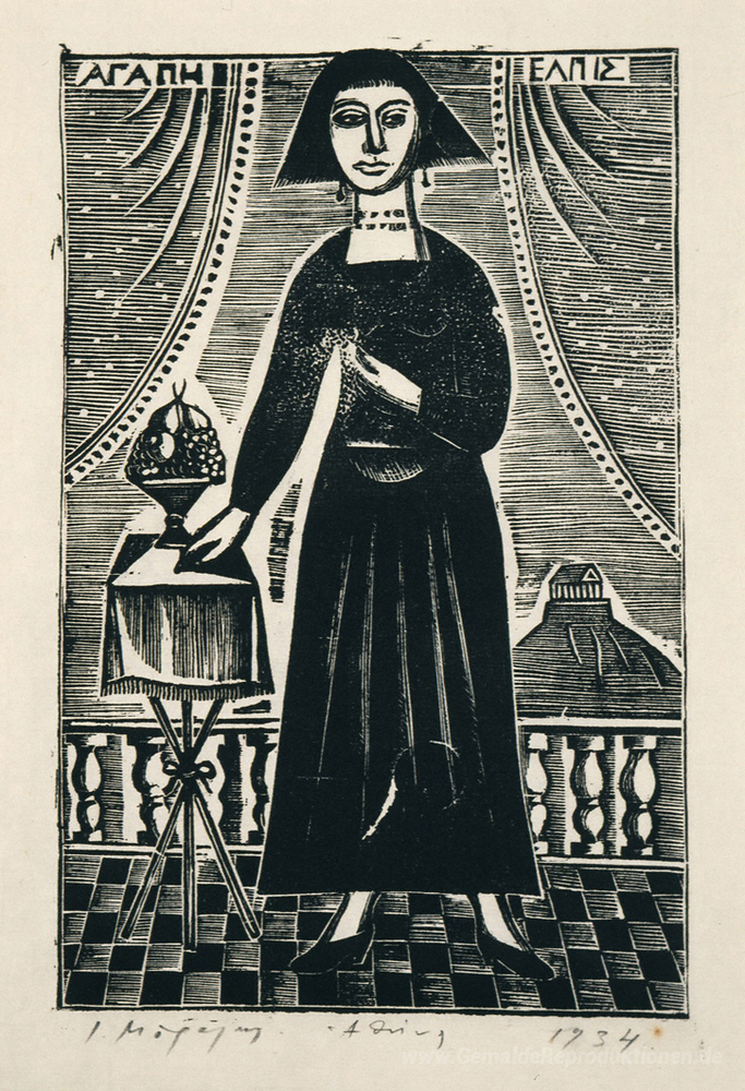 Wir bieten Ihnen eine handgefertigte Reproduktion auf Leinwand des berühmten Kunstwerks 'Liebe - Hoffnung' von Yiannis Moralis, aus dem Reproduktionsmuseum.