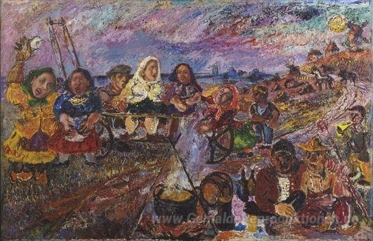 Wir bieten Ihnen eine handgefertigte Reproduktion auf Leinwand des berühmten Kunstwerks 'Lied der Ernte' von David Burliuk, aus dem Reproduktionsmuseum.