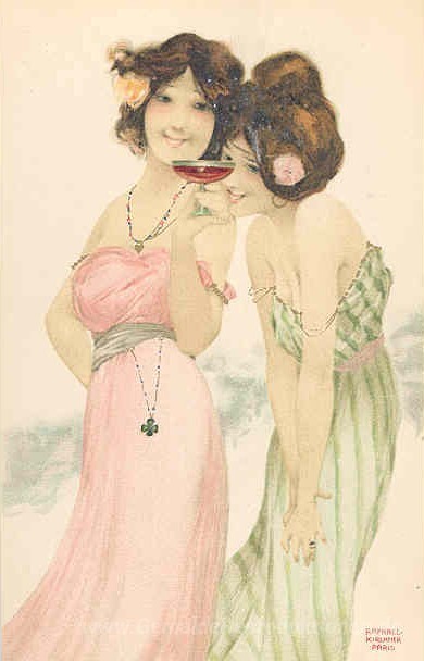 Wir bieten Ihnen eine handgefertigte Reproduktion auf Leinwand des berühmten Kunstwerks 'Mädchen mit Glücksbringer' von Raphael Kirchner, aus dem Reproduktionsmuseum.