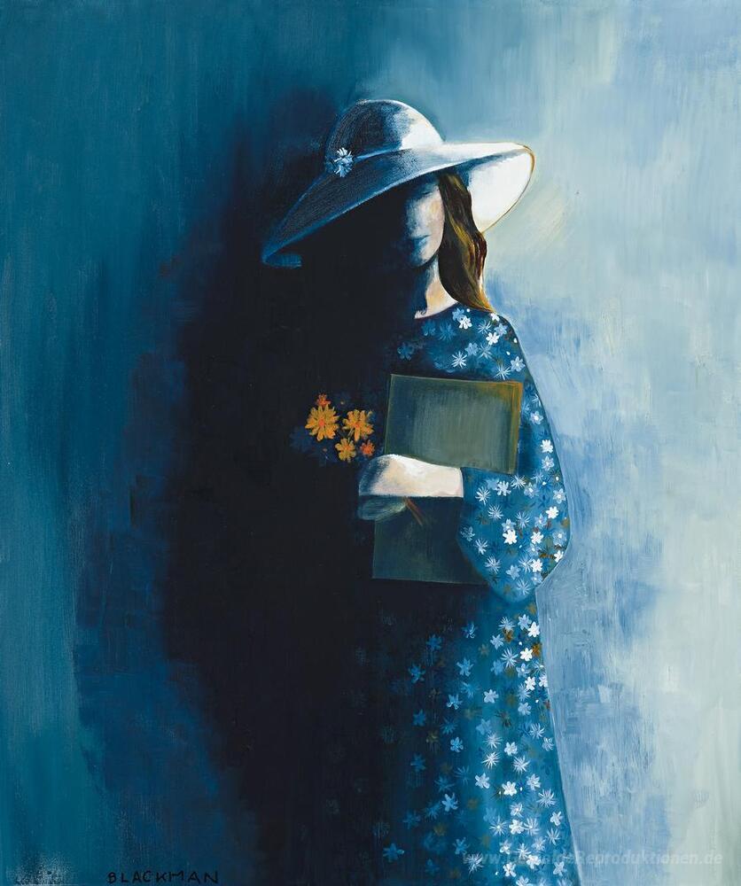 Wir bieten Ihnen eine handgefertigte Reproduktion auf Leinwand des berühmten Kunstwerks 'Mädchen mit Sternenkleid und Blumenstrauß' von Charles Blackman, aus dem Reproduktionsmuseum.