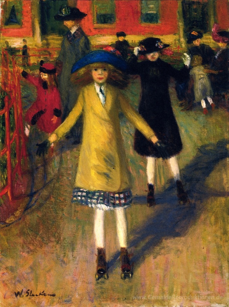 Wir bieten Ihnen eine handgefertigte Reproduktion auf Leinwand des berühmten Kunstwerks 'Mädchen Roller-Skating, Washington Square' von William James Glackens, aus dem Reproduktionsmuseum.