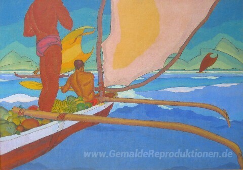 Wir bieten Ihnen eine handgefertigte Reproduktion auf Leinwand des berühmten Kunstwerks 'Männer in einem Ausleger-Kanu für Shore Leitung' von Arman Manookian, aus dem Reproduktionsmuseum.