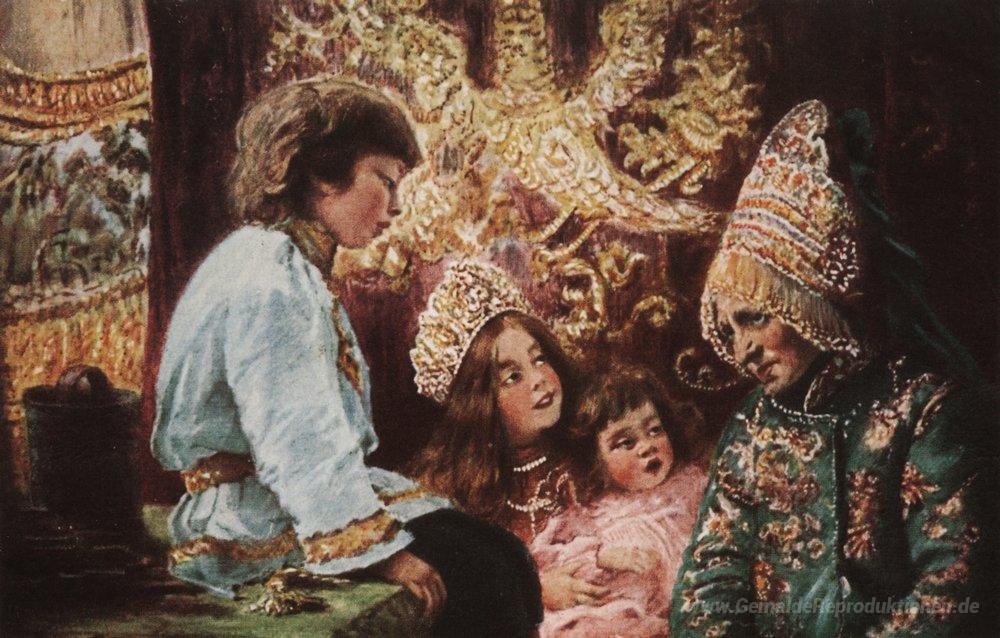 Wir bieten Ihnen eine handgefertigte Reproduktion auf Leinwand des berühmten Kunstwerks 'Märchen' von Konstantin Makovsky, aus dem Reproduktionsmuseum.