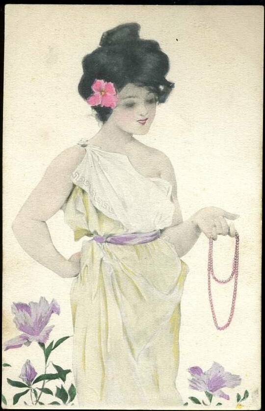 Wir bieten Ihnen eine handgefertigte Reproduktion auf Leinwand des berühmten Kunstwerks 'Maid of Athens' von Raphael Kirchner, aus dem Reproduktionsmuseum.