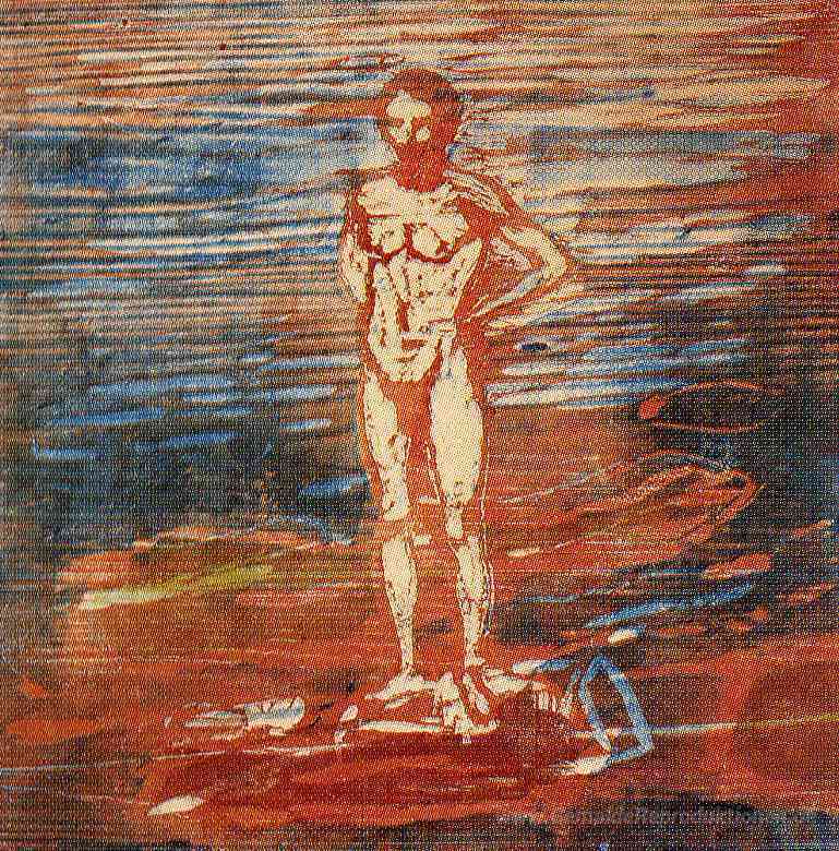 Wir bieten Ihnen eine handgefertigte Reproduktion auf Leinwand des berühmten Kunstwerks 'Man Bade' von Edvard Munch, aus dem Reproduktionsmuseum.