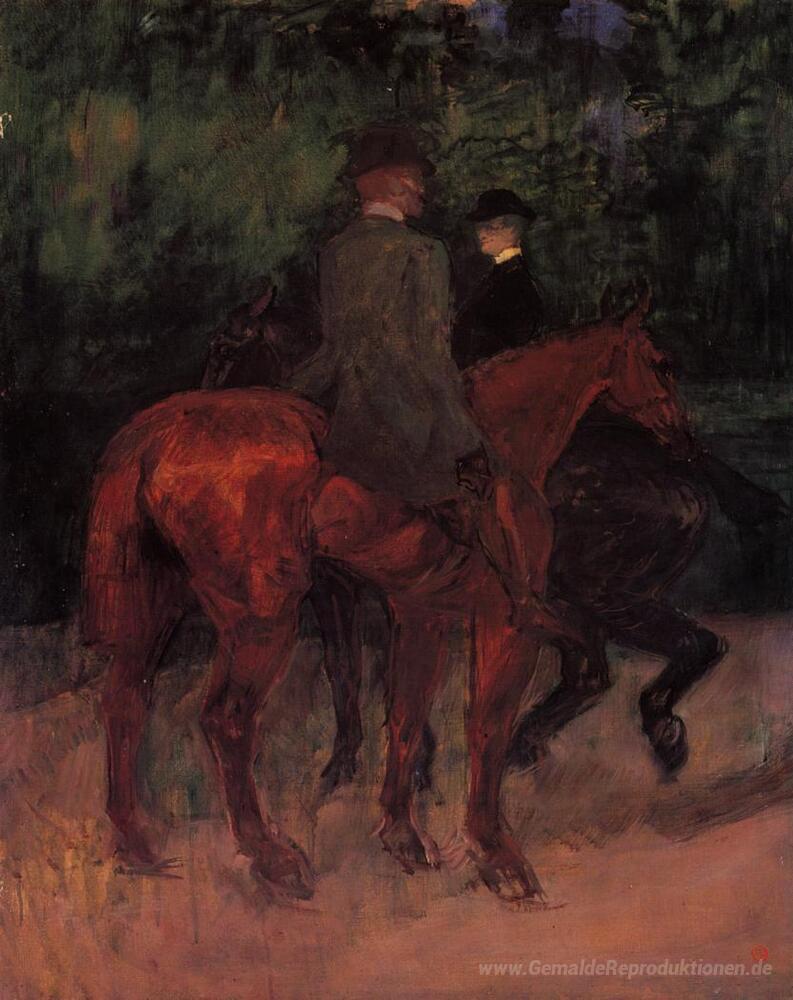 Wir bieten Ihnen eine handgefertigte Reproduktion auf Leinwand des berühmten Kunstwerks 'Mann und Frau Reiten durch den Wald' von Henri de Toulouse-Lautrec, aus dem Reproduktionsmuseum.