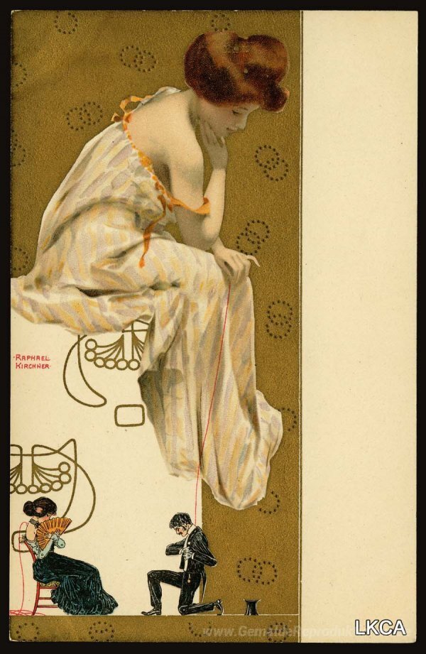 Wir bieten Ihnen eine handgefertigte Reproduktion auf Leinwand des berühmten Kunstwerks 'Marionettes' von Raphael Kirchner, aus dem Reproduktionsmuseum.