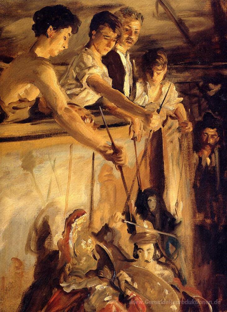 Wir bieten Ihnen eine handgefertigte Reproduktion auf Leinwand des berühmten Kunstwerks 'Marionettes' von John Singer Sargent, aus dem Reproduktionsmuseum.
