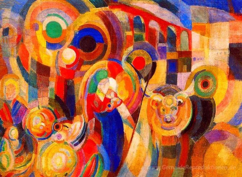 Wir bieten Ihnen eine handgefertigte Reproduktion auf Leinwand des berühmten Kunstwerks 'Markt am Minho' von Sonia Delaunay, aus dem Reproduktionsmuseum.