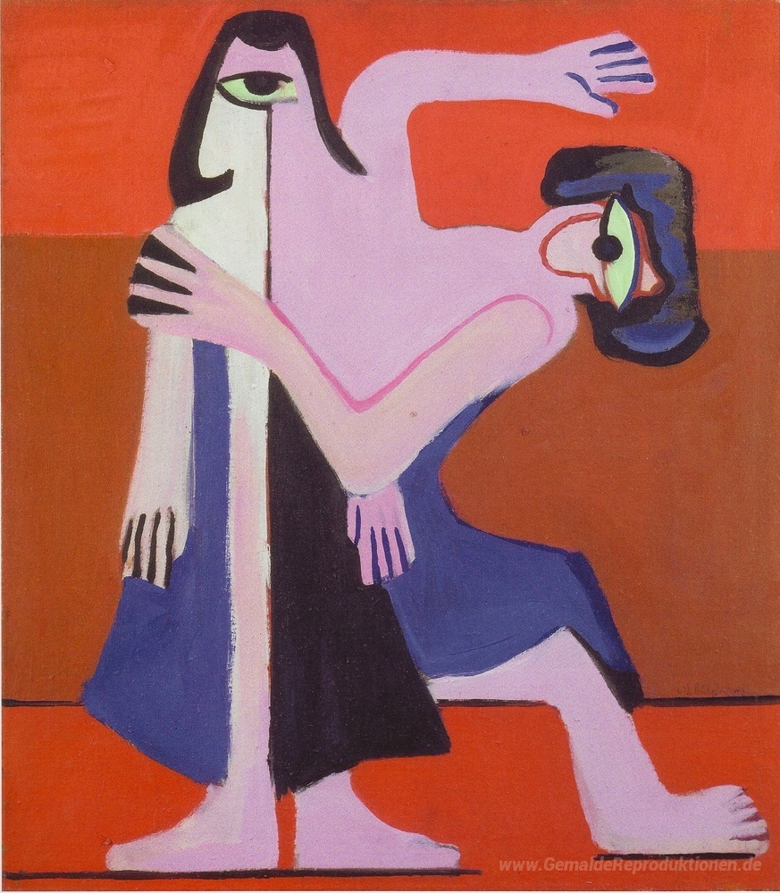 Wir bieten Ihnen eine handgefertigte Reproduktion auf Leinwand des berühmten Kunstwerks 'Maskentanz' von Ernst Ludwig Kirchner, aus dem Reproduktionsmuseum.