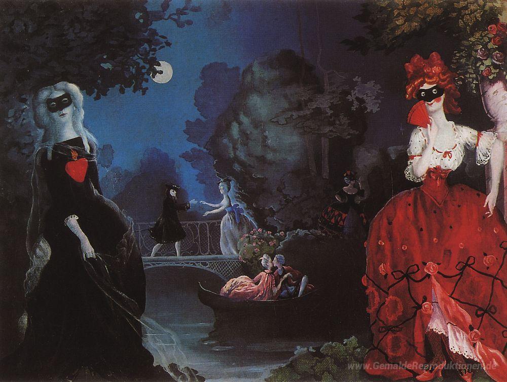 Wir bieten Ihnen eine handgefertigte Reproduktion auf Leinwand des berühmten Kunstwerks 'Masquerade' von Konstantin Somov, aus dem Reproduktionsmuseum.