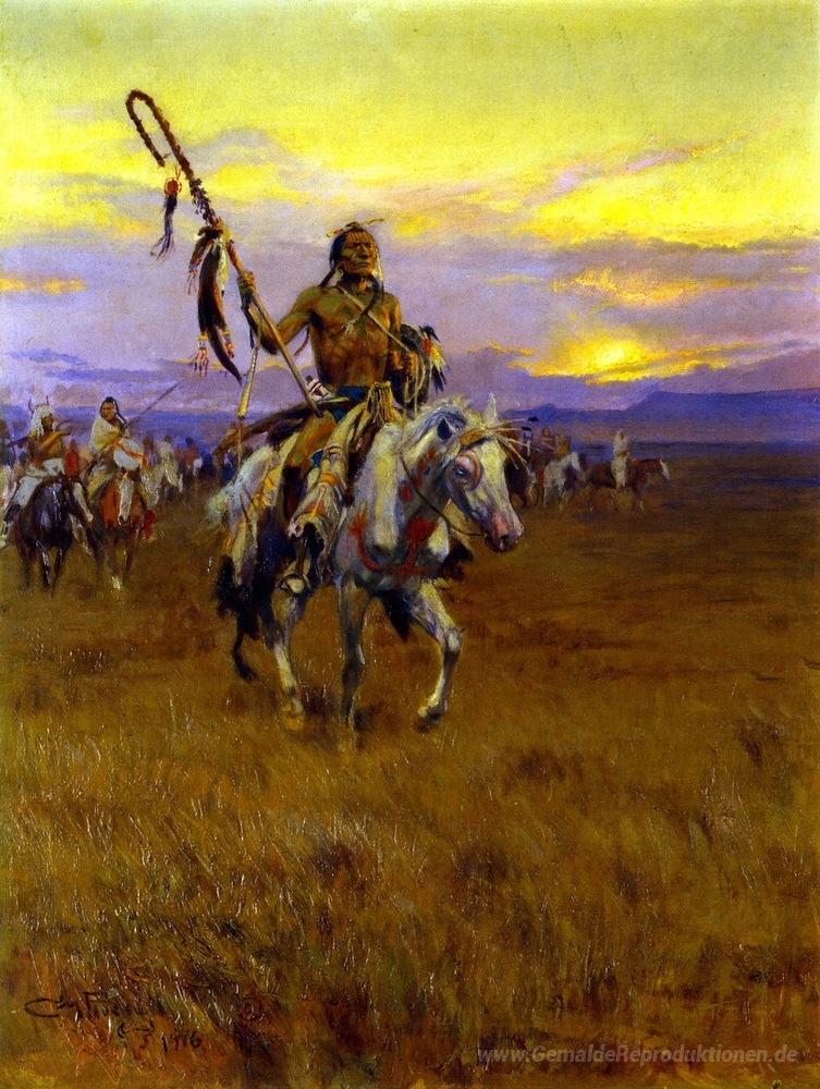 Willkommen in der faszinierenden Welt der Ölgemälde, in der Kunstwerke nicht nur Wände schmücken, sondern auch Geschichten erzählen. Eines dieser Meisterwerke ist Medicine Man [No. 4] des renommierten Künstlers Charles M. Russell. Russell, bekannt für seine beeindruckenden Darstellungen des amerikanischen Westens, fängt mit seiner einzigartigen Technik und seinem lebendigen Stil die Seele der Natur und die Geschichten der Menschen ein. Seine Werke kombinieren traditionelle Malmethoden mit einer tiefen Verbundenheit zur Landschaft und Kultur, die er darstellt.