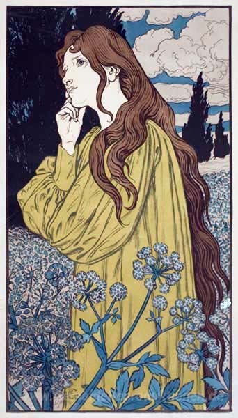 Wir bieten Ihnen eine handgefertigte Reproduktion auf Leinwand des berühmten Kunstwerks 'Meditation' von Eugène Grasset, aus dem Reproduktionsmuseum.